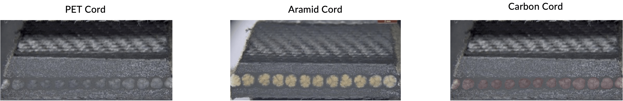 And now with Carbon Cord, we can better answer the specific needs of any application thrown at our belts. Whether for a dedicated design and special specifications or to be used on a non-modified machine, we now have the ability to perfectly engineer and manufacture to any specification needed.